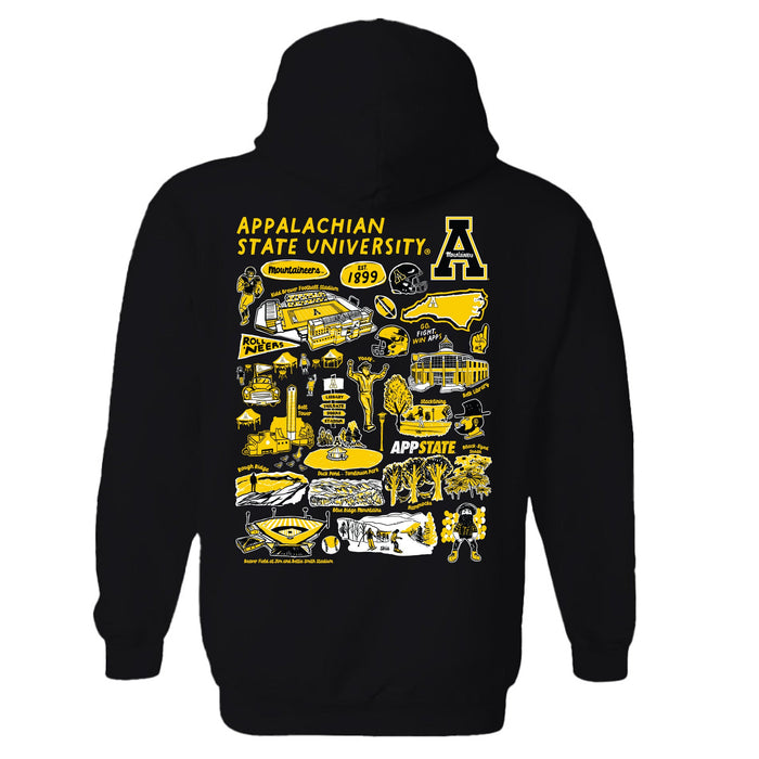 Back: A detailed, artistic print celebrating the most iconic places and traditions of Appalachian State University making it a must-have for students, alumni, and fans!