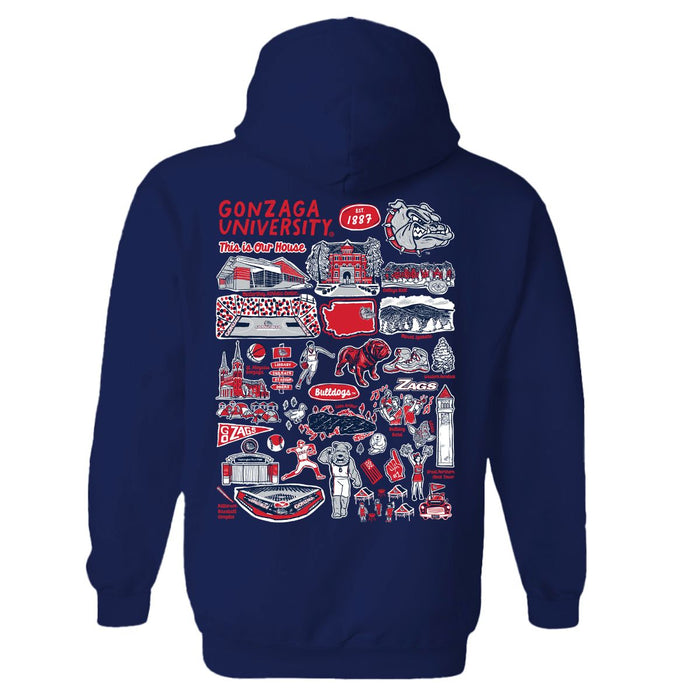 Gonzaga Bulldogs Zags GU Hand Sketched Vive La Fete Artwork Cotton Fleece Women Hoodie