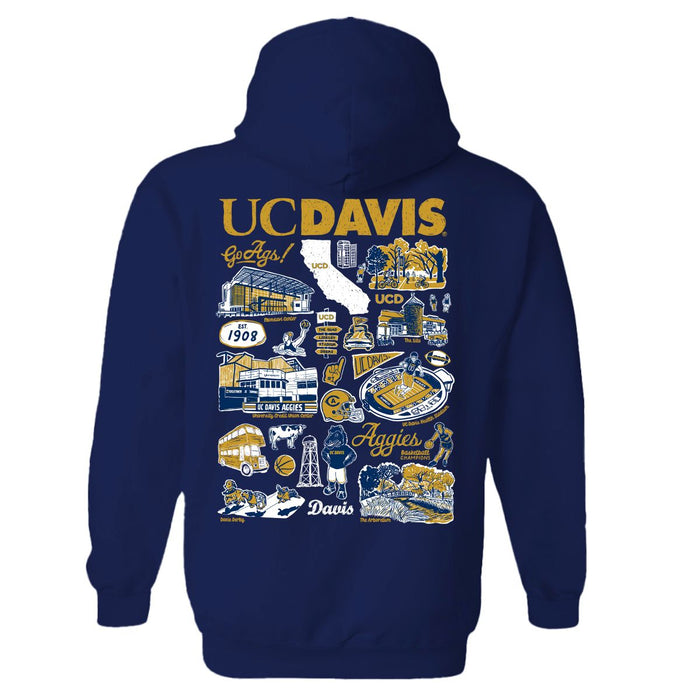 UC Davis Aggies Hand Sketched Vive La Fete Artwork Cotton Fleece Women Hoodie