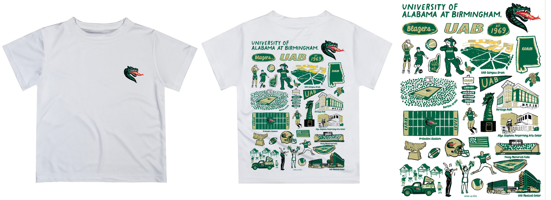 Let your kiddo look cool in his new Vive La Fete Impressions hand sketched artwork boys tee shirt. Let him play, go to the game, and cheer loudly and proudly with his UAB Blazers gear by Vive La Fete.