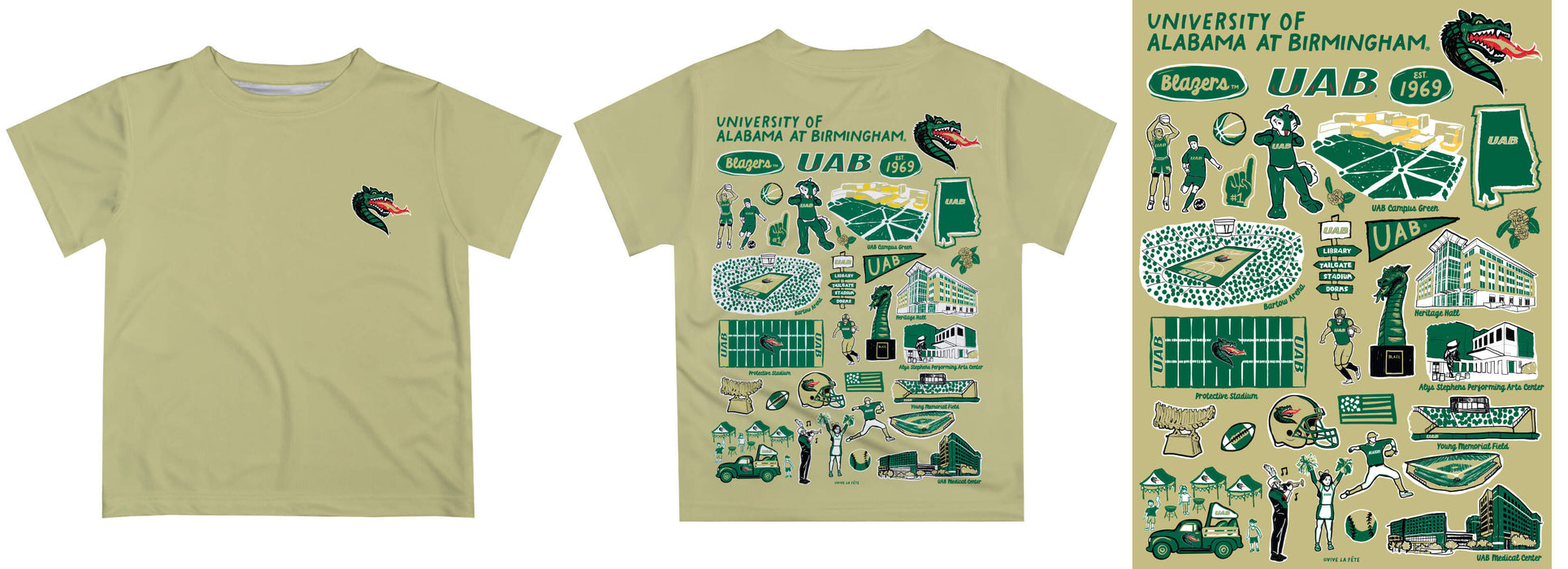 Alabama at Birmingham Blazers Hand Sketched Vive La Fete Impressions Artwork Boys Gold Short Sleeve Tee Shirt
