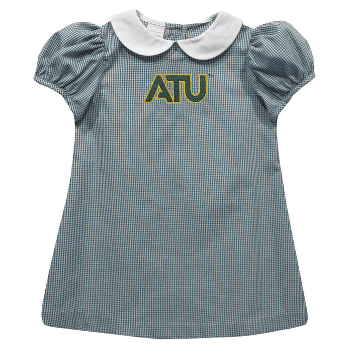 Arkansas Tech Jerry the Bulldog ATU Embroidered Hunter Green Gingham Short Sleeve A Line Dress