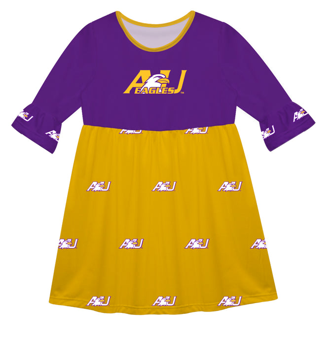Ashland Eagles AU Vive La Fete Girls Game Day 3/4 Sleeve Solid Gold All Over Logo on Skirt