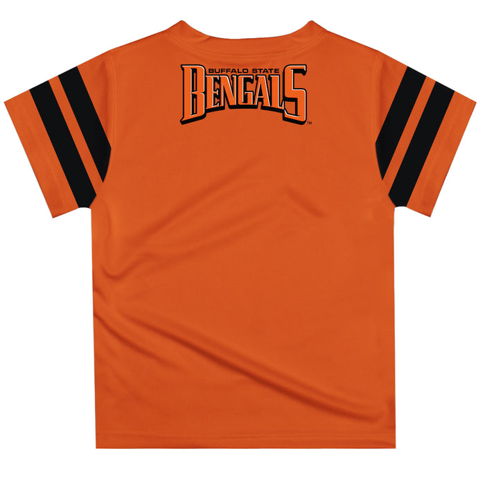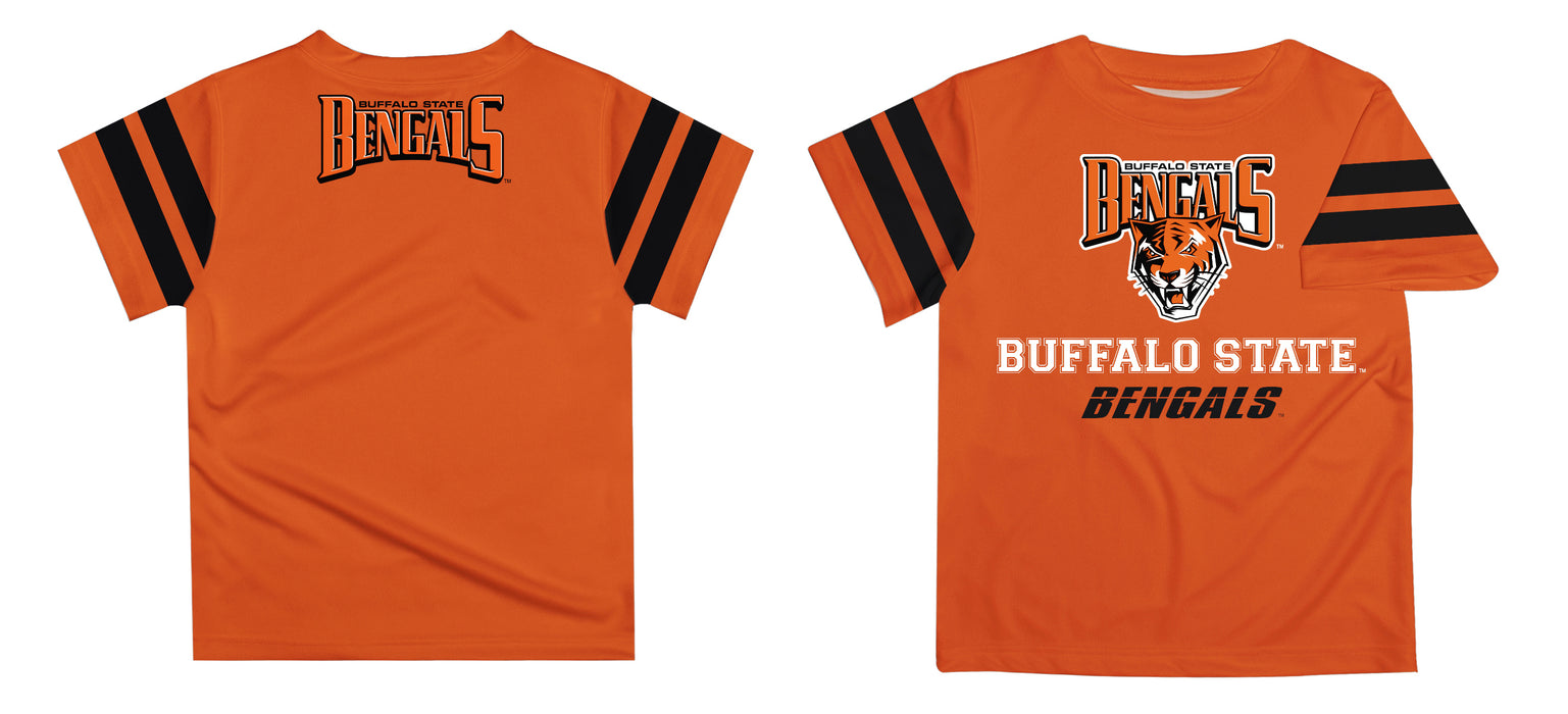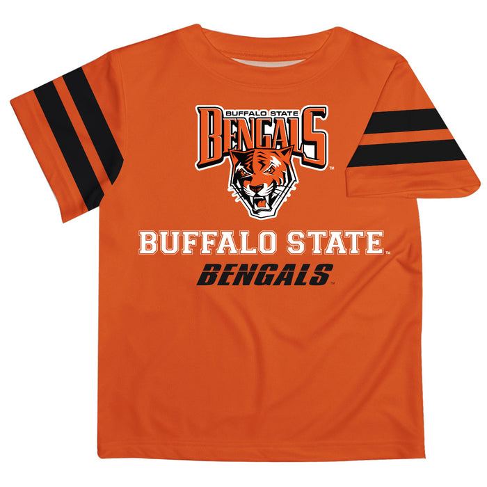 Buffalo State Bengals Vive La Fete Boys GameDay Orange Short Sleeve Tee with Stripes on Sleeves