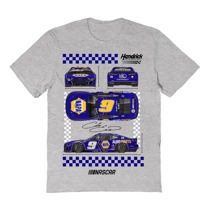 Chase Elliott NASCAR Car View Cotton T-Shirt - Grey