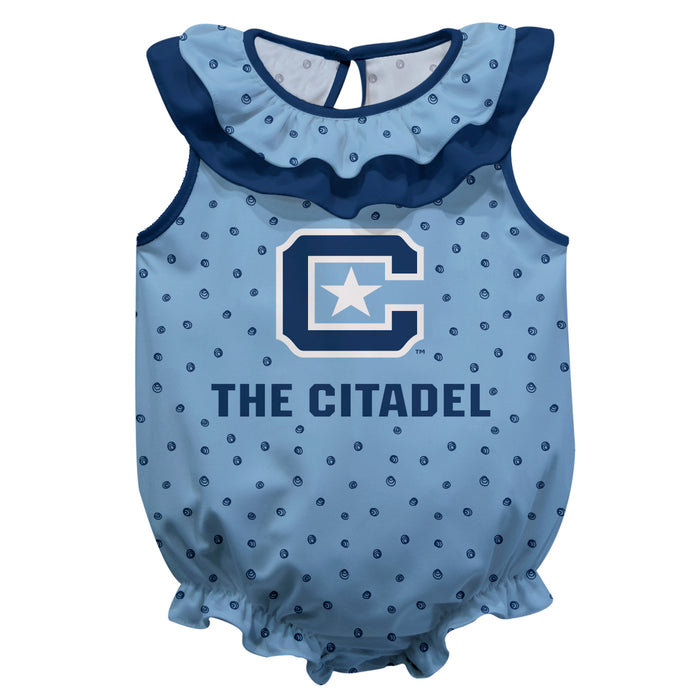 Citadel Bulldogs Swirls Light Blue Sleeveless Ruffle Bodysuit Logo
