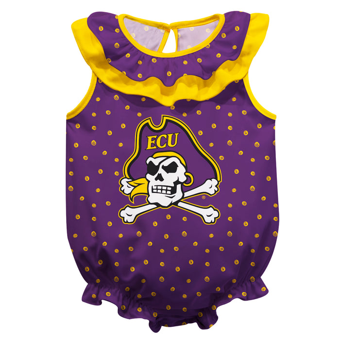East Carolina Pirates Swirls Purple Sleeveless Ruffle Bodysuit Logo Bodysuit