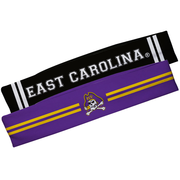 East Carolina Pirates Vive La Fete Girls Women Game Day Set of 2 Stretch Headbands Headbands Logo Purple and Name Black