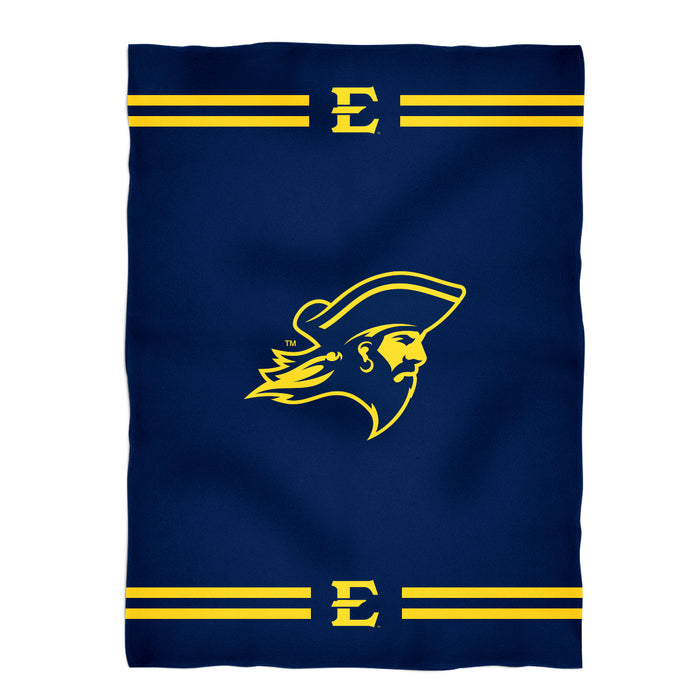 East Tennessee Buccaneers Vive La Fete Game Day Soft Premium Fleece Navy Throw Blanket 40" x 58" Logo and Stripes
