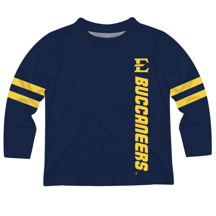 Feel your team pride. Do not miss our game event. Order now our East Tennessee State Stripes Blue Long Sleeve Tee Shirt An Officially licensed style from Vive La Fete Collegiate Crew neck