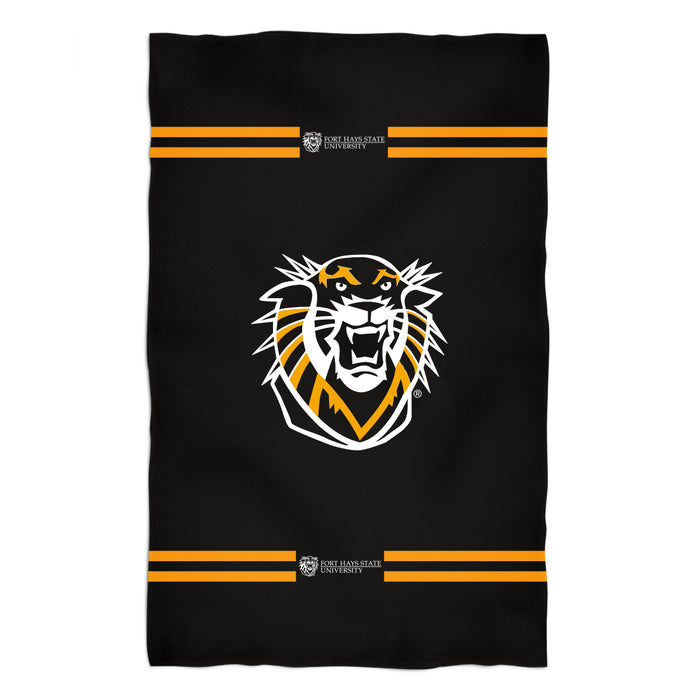 FHSU Tigers Vive La Fete Game Day Absorbent Premium Black Beach Bath Towel 51 x 32" Logo and Stripes