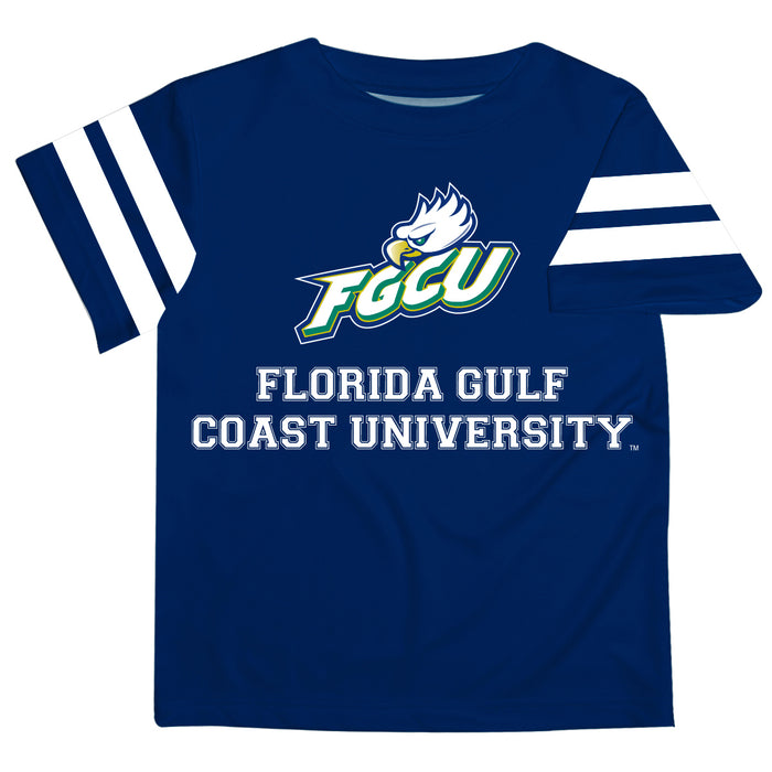 Florida Gulf Coast Eagles Vive La Fete Boys Game Day Blue Short Sleeve Tee with Stripes on Sleeves