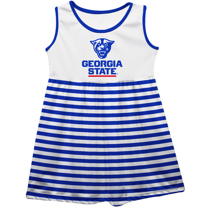 Georgia State Panthers Vive La Fete Girls Game Day Sleeveless Tank Dress Solid White Logo Striped on Skirt