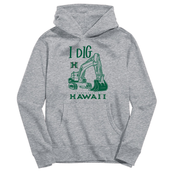Hawaii Rainbow Warriors Excavator Heather Grey Cotton Youth Hoodie