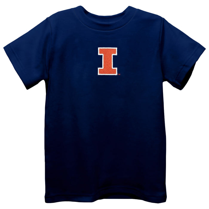 Illinois Fighting Illini Embroidered Navy knit Short Sleeve Boys Tee Shirt