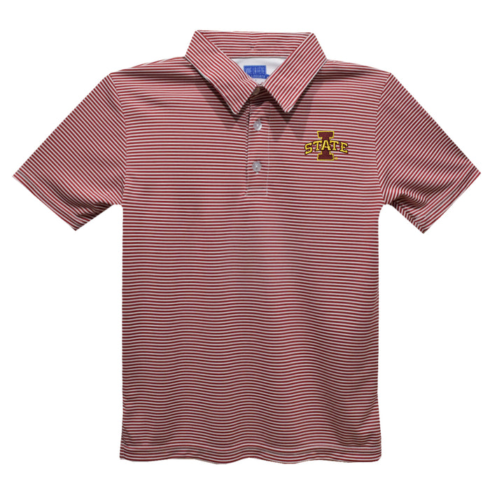 Iowa State Cyclones ISU Red Stripes Short Sleeve Polo Box Shirt