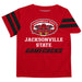 Jacksonville State Gamecocks Vive La Fete Boys Game Day Red Short Sleeve Tee with Stripes on Sleeves