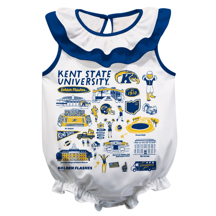 Kent State Golden Flashes White Hand Sketched Vive La Fete Impressions Artwork Sleeveless Ruffle Bodysuit Bodysuit