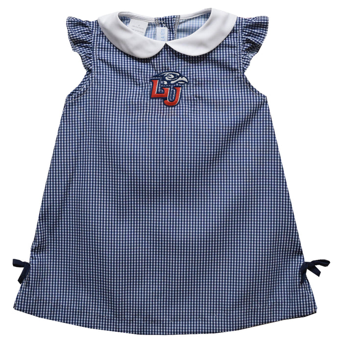 Liberty Flames Embroidered Navy Gingham A Line Dress