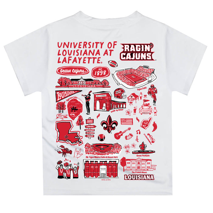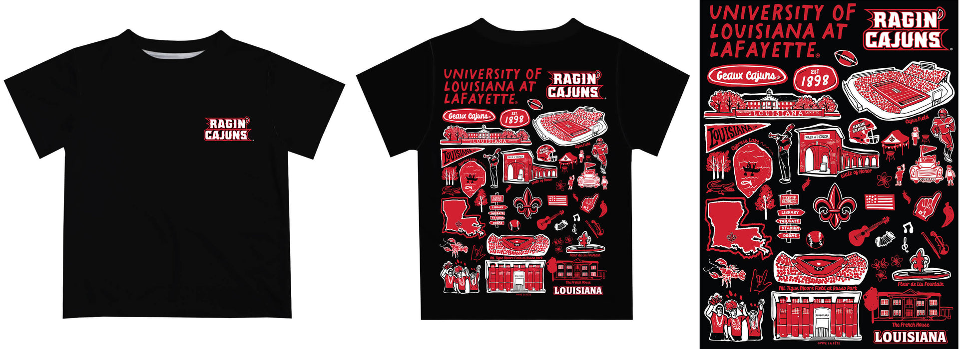 Louisiana at Lafayette Cajuns Hand Sketched Vive La Fete Impressions Artwork Boys Black Short Sleeve Tee Shirt
