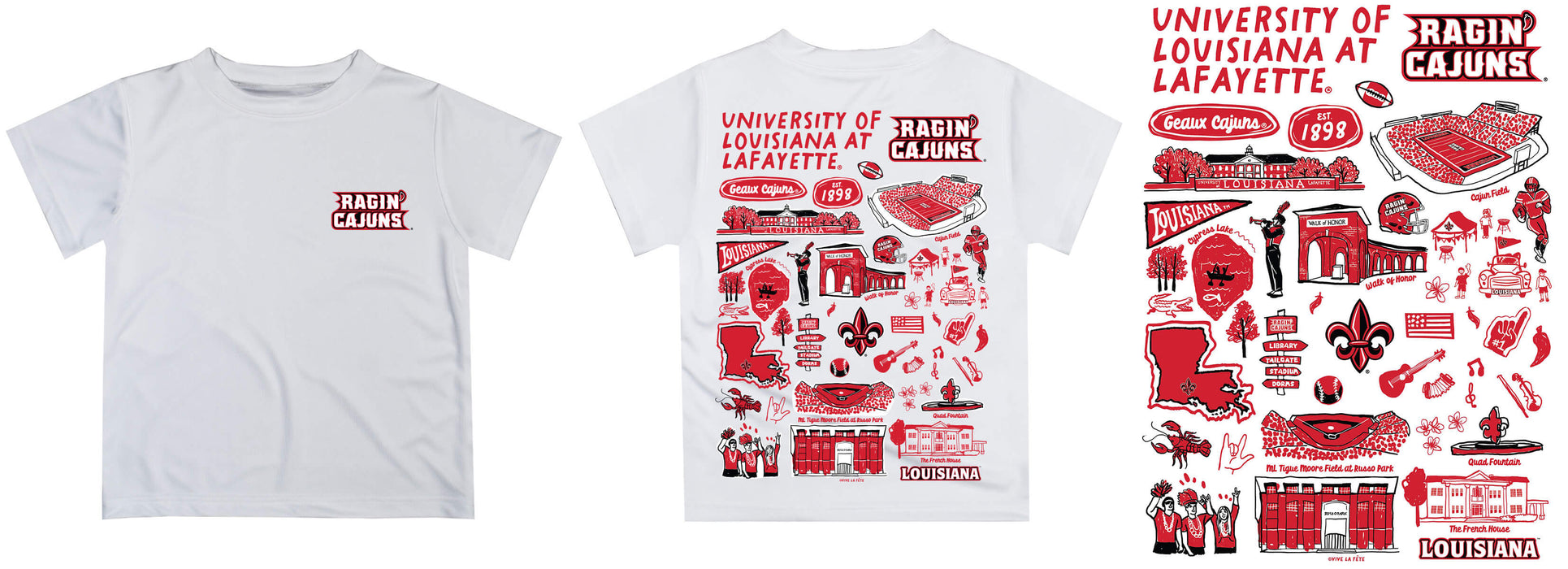 Let your kiddo look cool in his new Vive La Fete Impressions hand sketched artwork boys tee shirt. Let him play, go to the game, and cheer loudly and proudly with his Louisiana Ragin Cajuns gear by Vive La Fete.