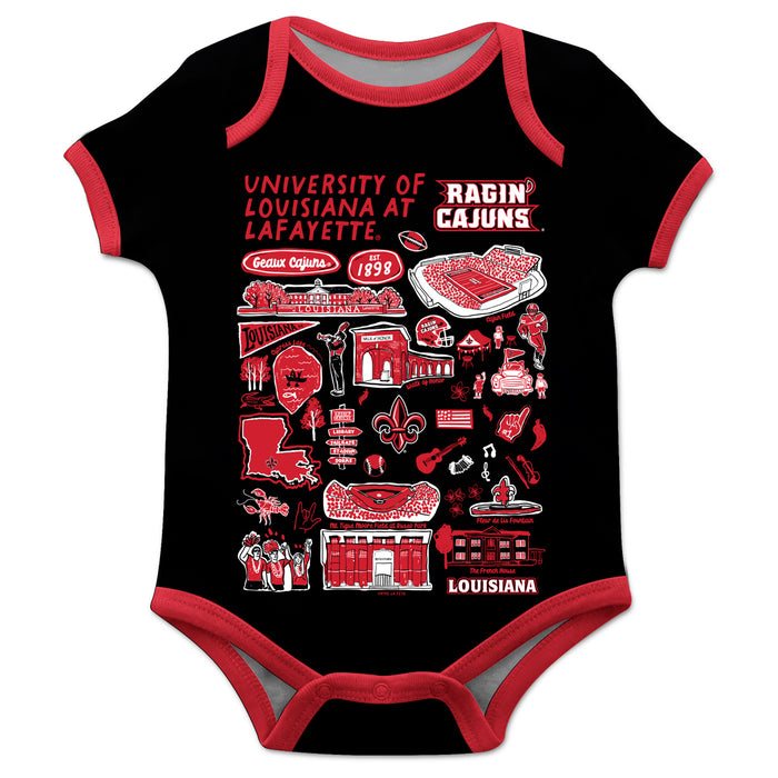 Louisiana at Lafayette Cajuns Hand Sketched Vive La Fete Impressions Artwork Infant Black Short Sleeve Bodysuit Bodysuit