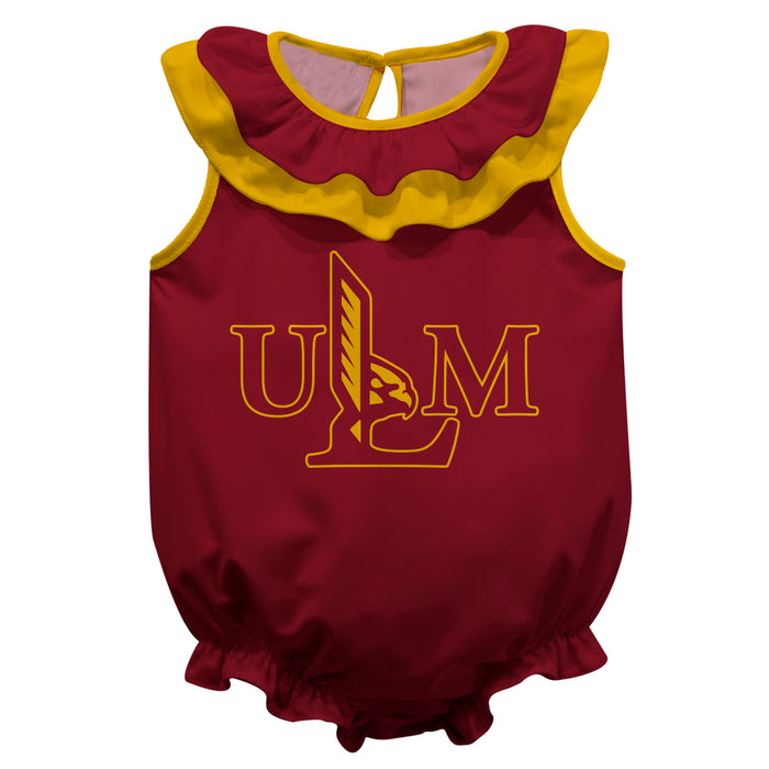 Louisiana Monroe Warhawks ULM Maroon Sleeveless Ruffle Bodysuit Logo Bodysuit by Vive La Fete