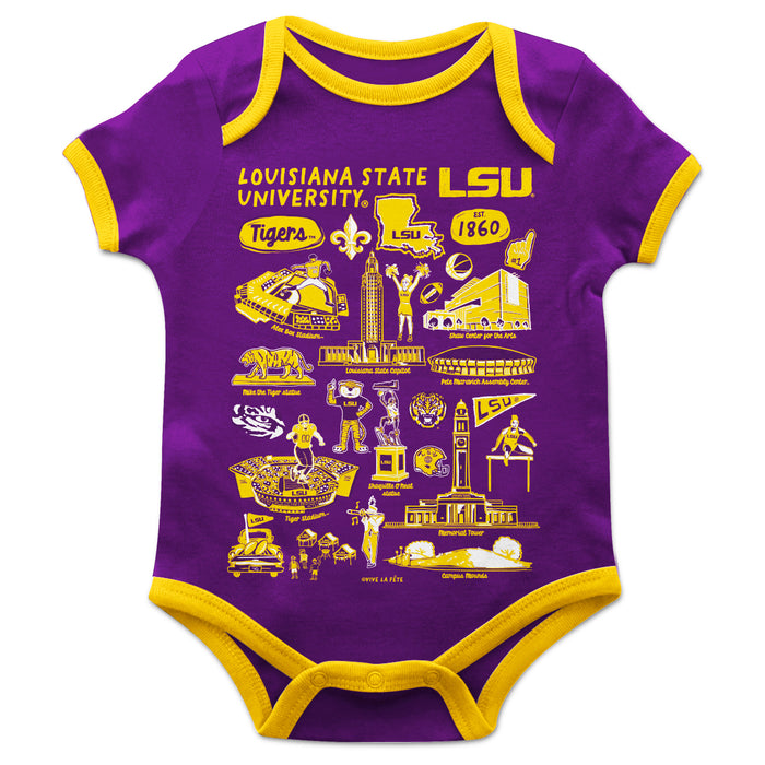 LSU Tigers Hand Sketched Vive La Fete Impressions Artwork Infant Purple Short Sleeve Bodysuit Bodysuit