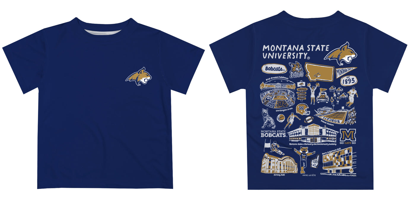Montana State Bobcats MSU Hand Sketched Vive La Fete Impressions Artwork Boys Blue Short Sleeve Tee Shirt