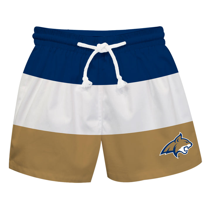 Montana State Bobcats Vive La Fete Blue White Gold Stripes Swimtrunks