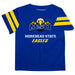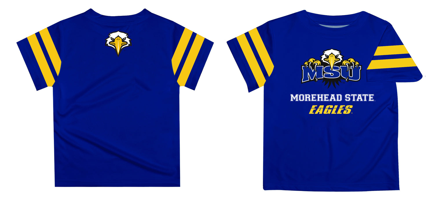 Morehead State Eagles Vive La Fete Boys Game Day Blue Short Sleeve Tee with Stripes on Sleeves