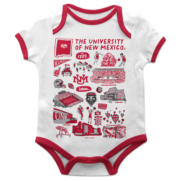New Mexico Lobos UNM Hand Sketched Vive La Fete Impressions Artwork Infant White Short Sleeve Bodysuit Bodysuit