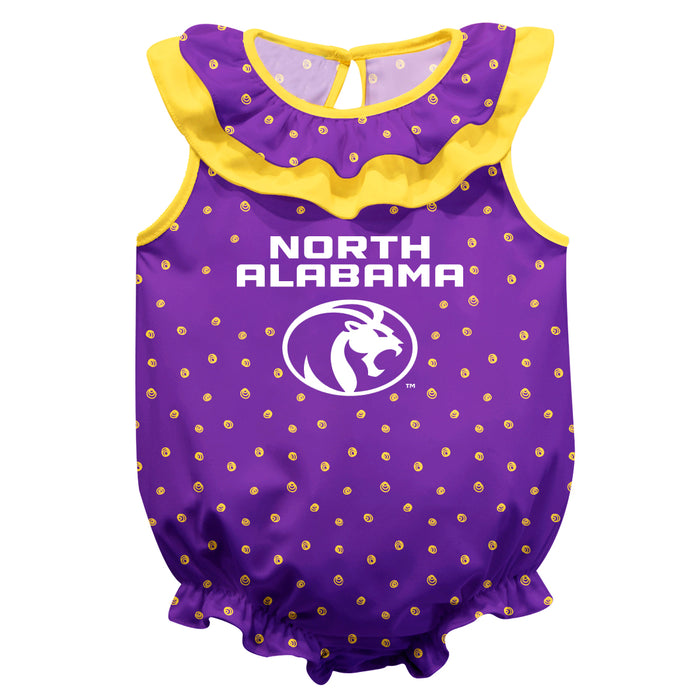North Alabama Lions Swirls Purple Sleeveless Ruffle Bodysuit Logo Bodysuit