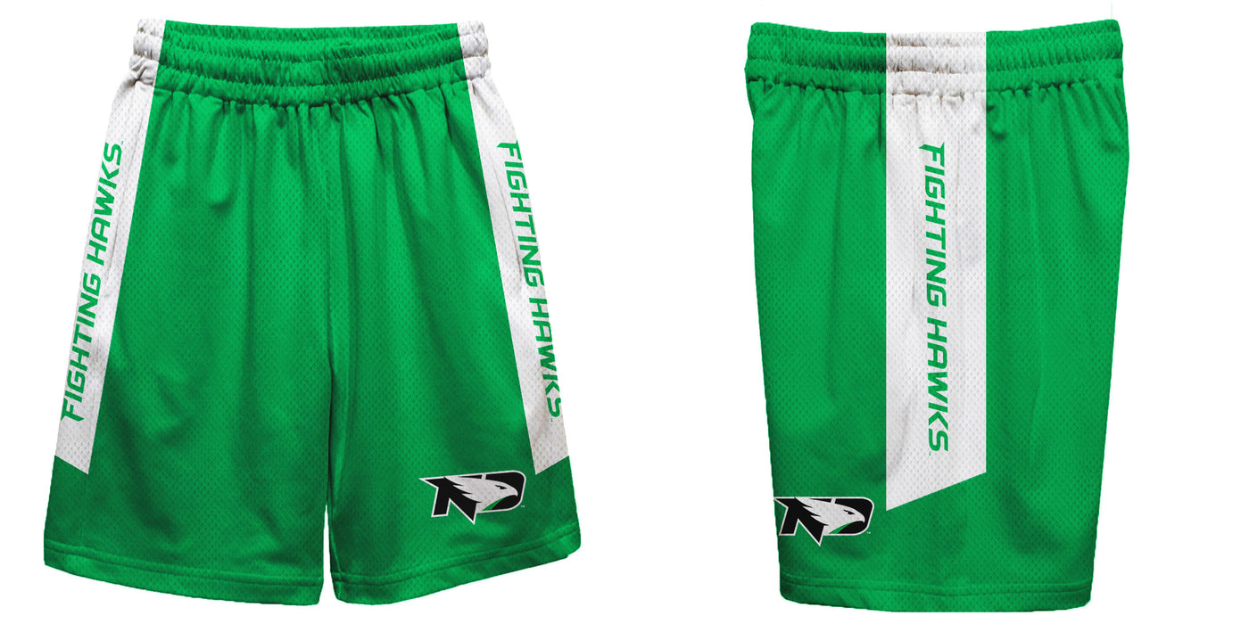 North Dakota Fighting Hawks Vive La Fete Game Day Green Stripes Boys Solid White Athletic Mesh Short