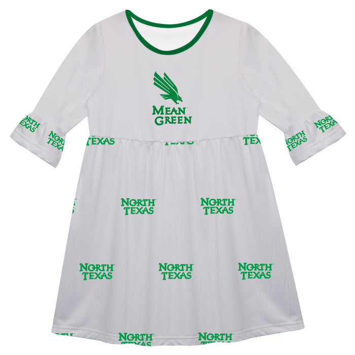 North Texas Mean Green Vive La Fete Girls Game Day 3/4 Sleeve Solid White All Over Logo on Skirt