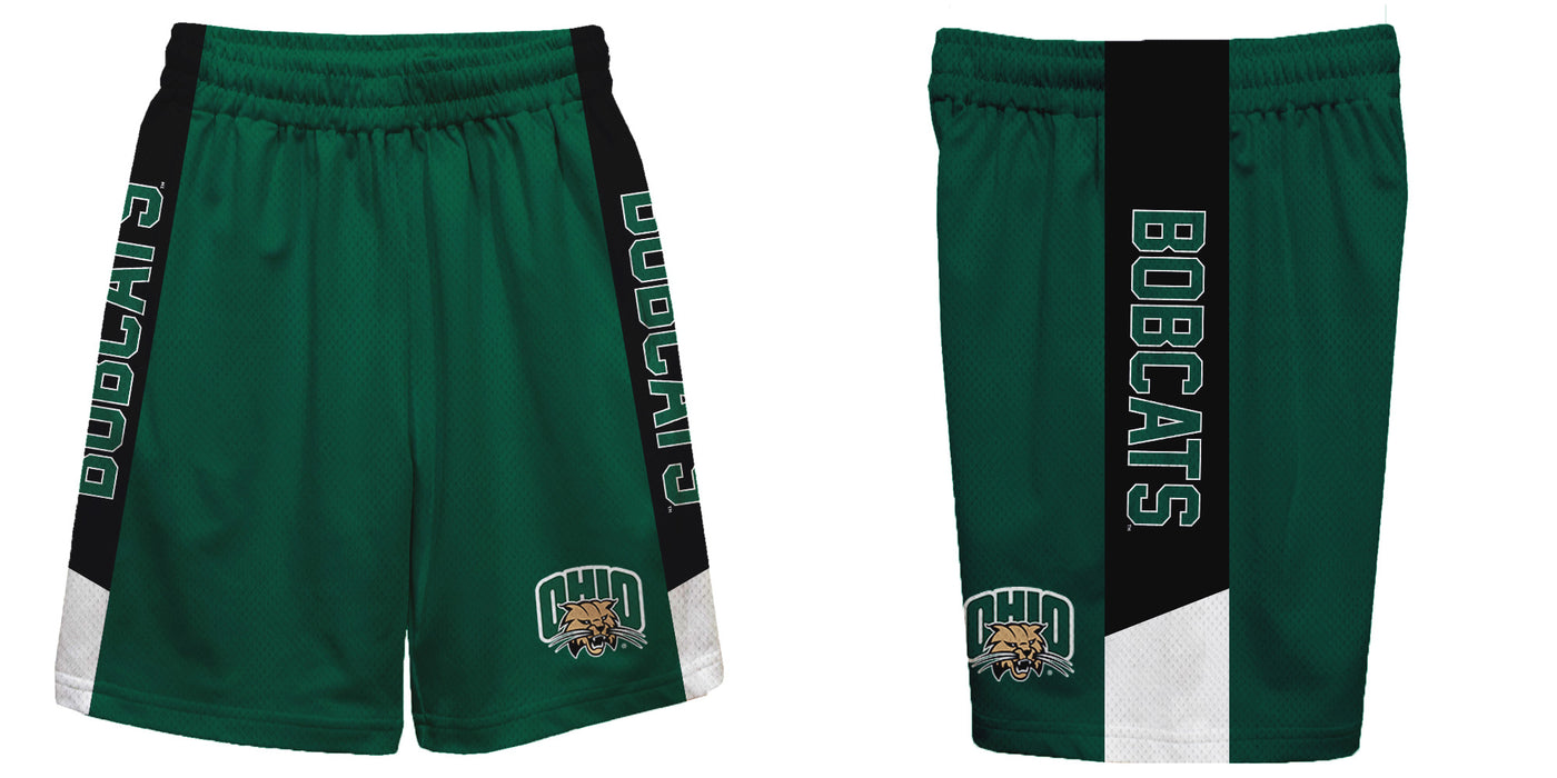 Ohio Bobcats Vive La Fete Game Day Green Stripes Boys Solid Black Athletic Mesh Short