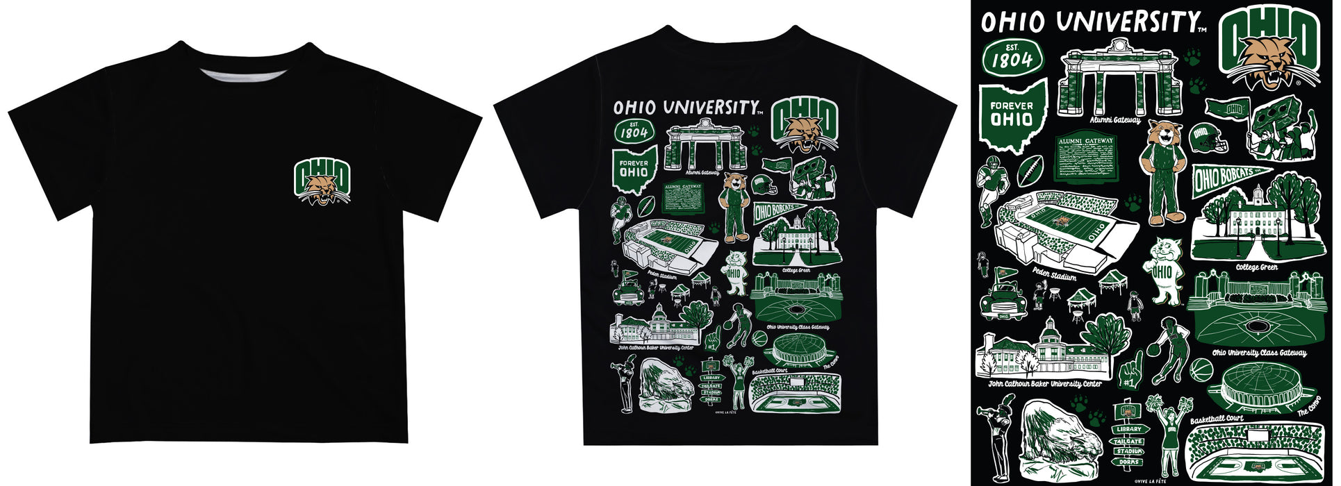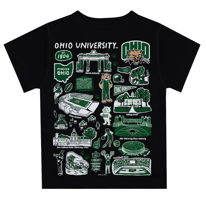 Ohio University Bobcats Hand Sketched Vive La Fete Impressions Artwork Boys Black Short Sleeve Tee Shirt