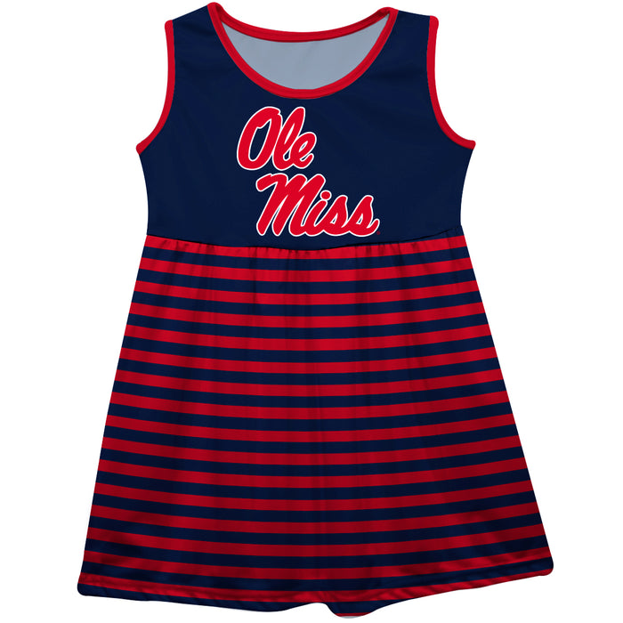 Ole Miss Rebels Vive La Fete Girls Game Day Sleeveless Tank Dress Solid Red Logo Striped on Skirt