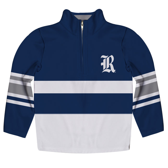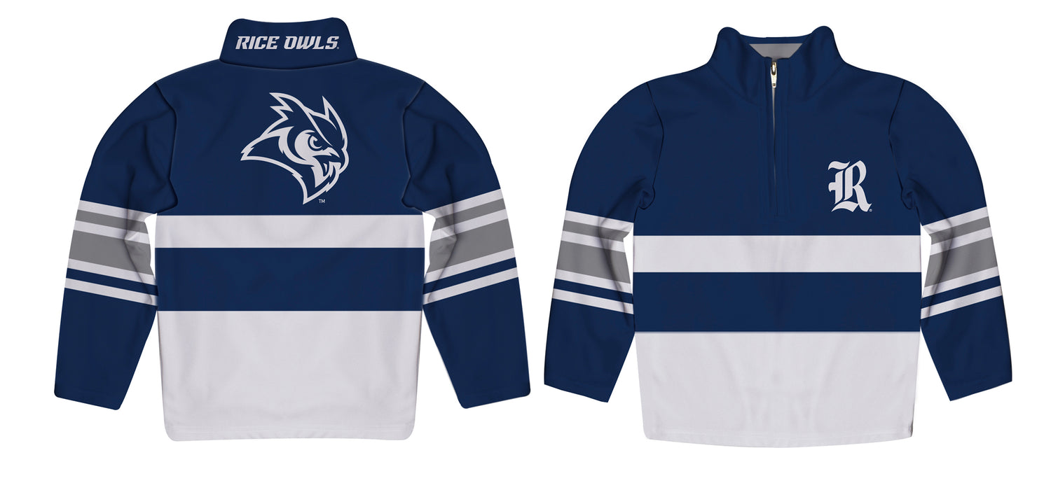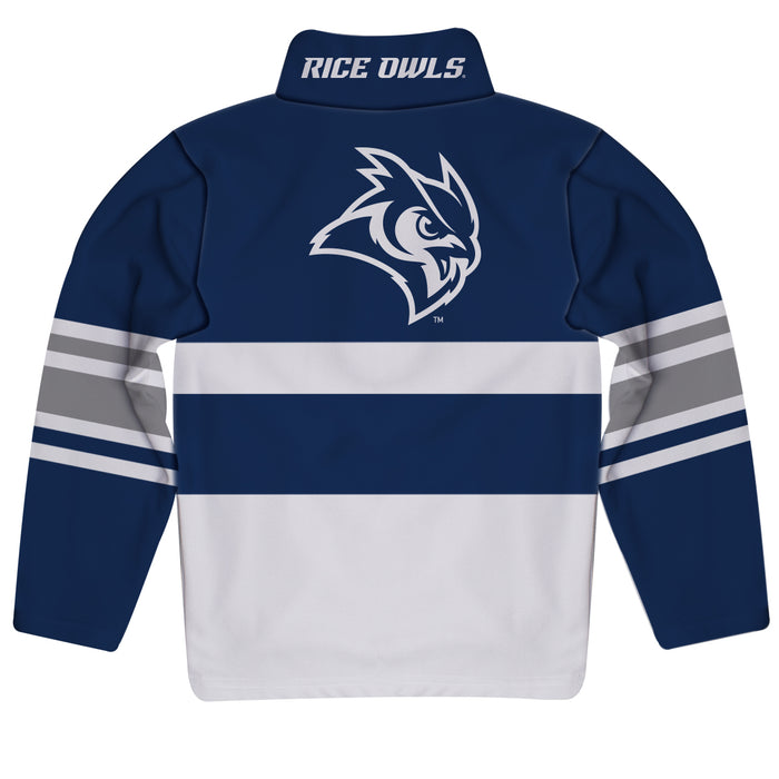 Rice Owls Logo Stripes Blue Long Sleeve Quarter Zip Sweatshirt