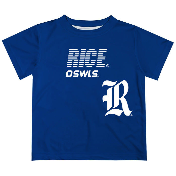 Rice Owls Solid Stripped Logo Blue Short Sleeve Tee Shirt