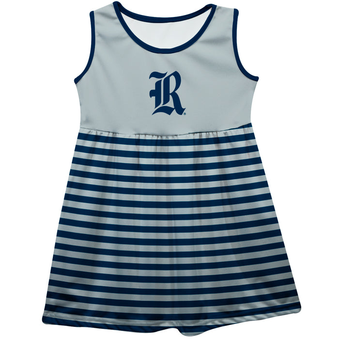 Rice Owls Vive La Fete Girls Game Day Sleeveless Tank Dress Solid Gray Logo Striped on Skirt