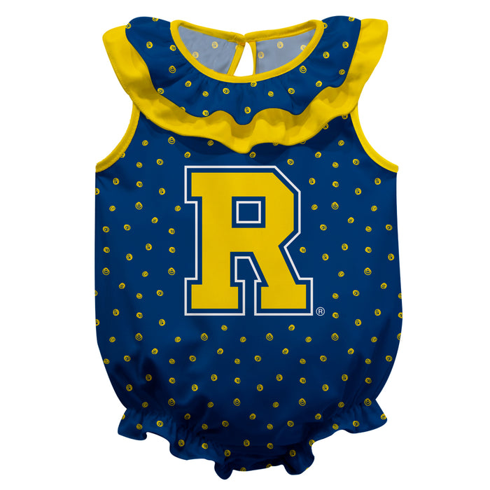 Rochester Yellowjackets Swirls Blue Sleeveless Ruffle Bodysuit Logo
