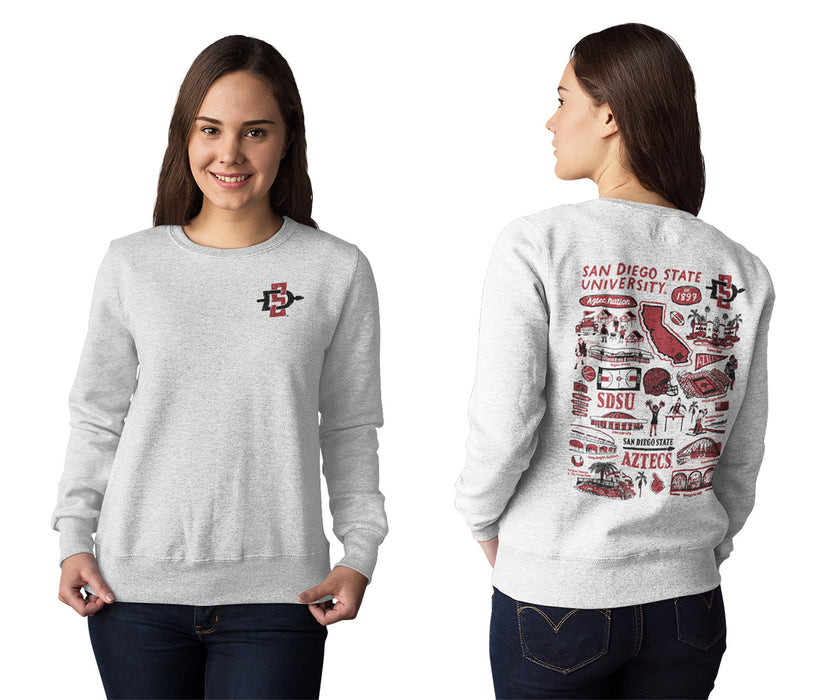 Show off your San Diego State Aztecs pride in style with our San Diego State University Impressions Collection Crewneck! Designed for ultimate comfort and a classic collegiate look, this sweatshirt features a hand-sketched design showcasing San Diego State University most iconic landmarks. This piece is a must-have for every true fan.