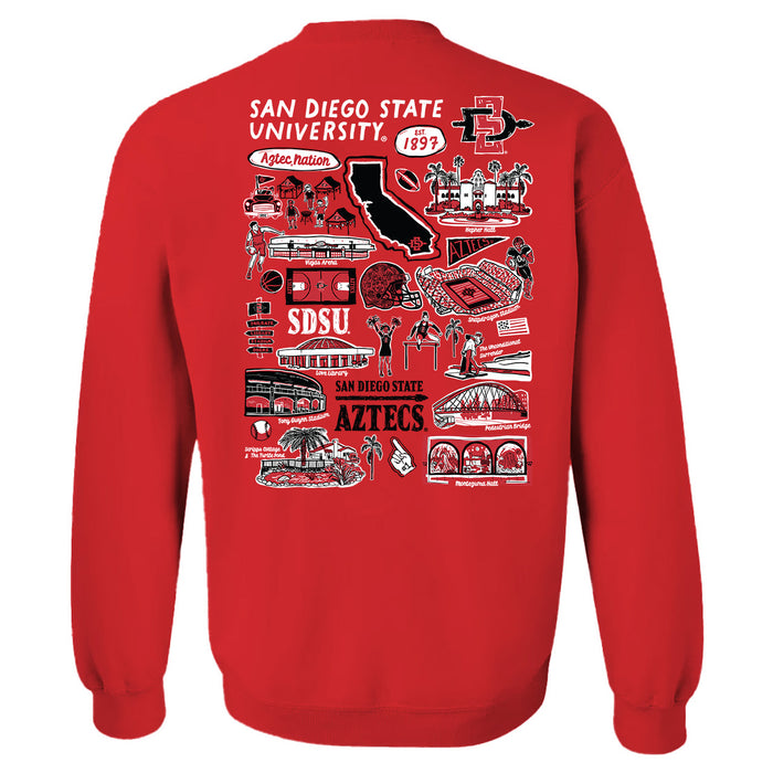 San Diego State Aztecs SDSU Hand Sketched Vive La Fete Artwork Red Crewneck Sweatshirt for Women
