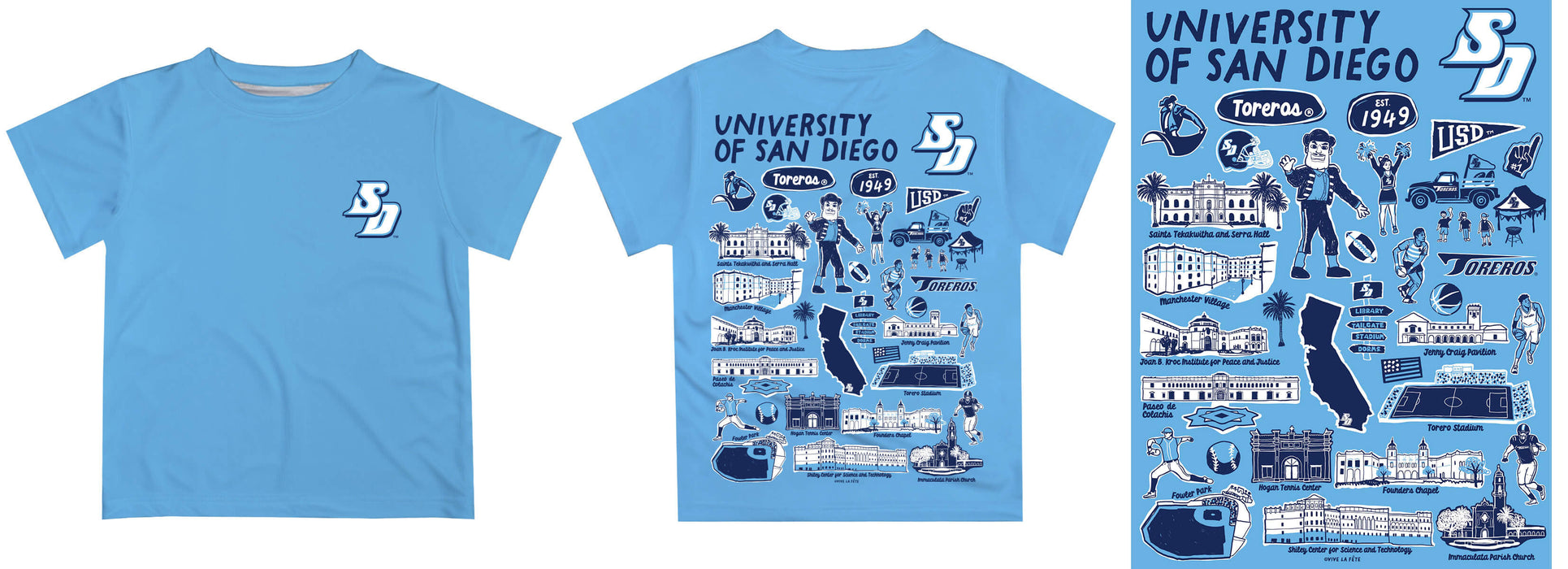 San Diego Toreros Hand Sketched Vive La Fete Impressions Artwork Boys Light Blue Short Sleeve Tee Shirt