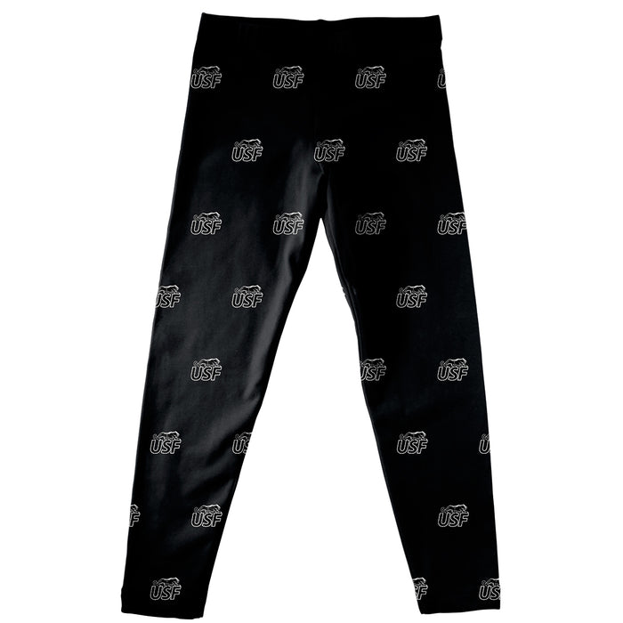 Sioux Falls Cougars USF Vive La Fete Girls Game Day All Over Logo Elastic Waist Classic Play Black Leggings Tights
