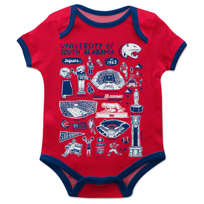 South Alabama Jaguars Hand Sketched Vive La Fete Impressions Artwork Infant Red Short Sleeve Bodysuit Bodysuit
