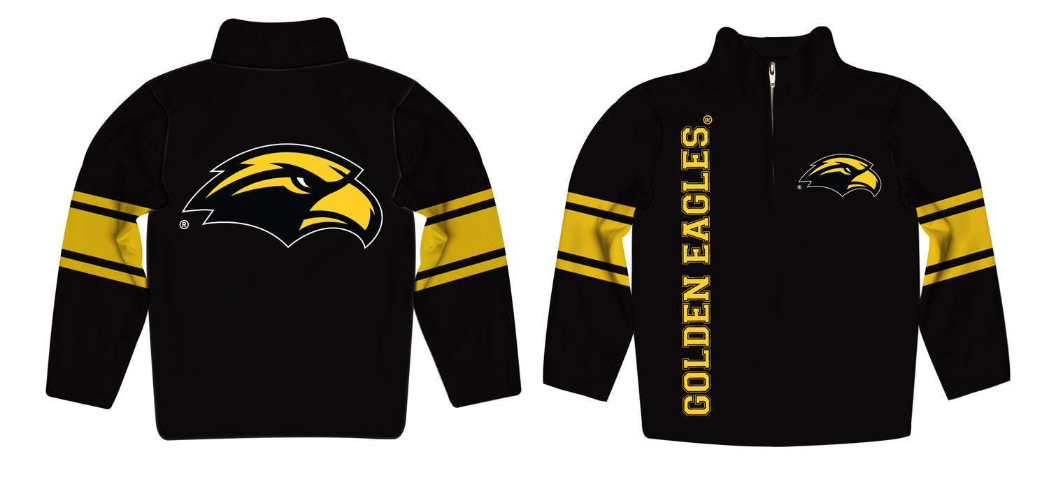 Celebrate and cheer on game day with our Southern Mississippi Stripes Black Long Sleeve Quarter Zip Sweats An Officially Licensed product sold by Vive La Fete Long sleeve