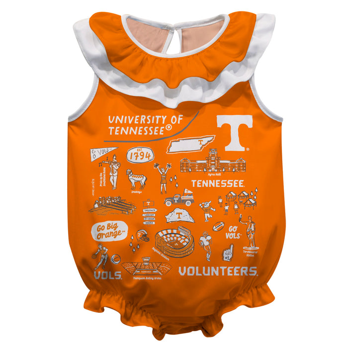 Tennessee Vols Orange Hand Sketched Vive La Fete Impressions Artwork Sleeveless Ruffle Bodysuit Bodysuit