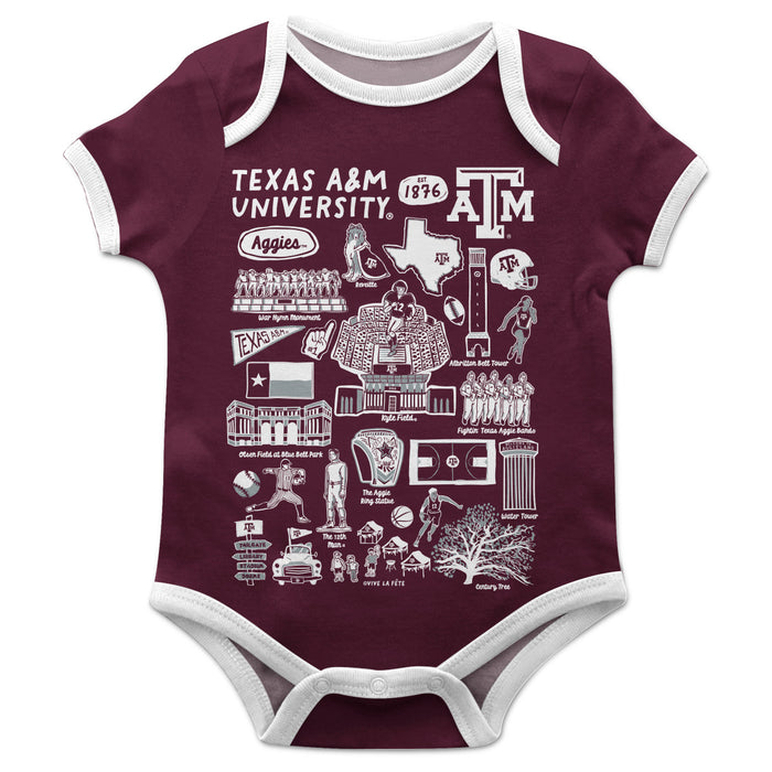 Texas A&M Aggies Hand Sketched Vive La Fete Impressions Artwork Infant Aggie Maroon Short Sleeve Bodysuit Bodysuit
